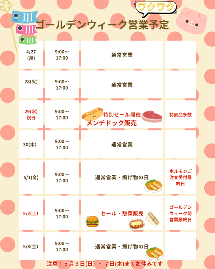 GWお休みのご案内